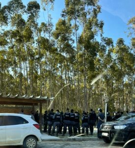 Um grande aparato composto por dezenas de policiais, viaturas, máquinas de terraplenagem e caminhões amanheceu nesta quinta feira (11) em Itaúnas para cumprir um mandado judicial de reintegração de posse de áreas que foram ocupadas e vendidas ilegalmente nas proximidades de Itaúnas, em Conceição da Barra. Casas foram derrubadas e naquelas em que os moradores se recusaram a sair homens da polícia e da Suzano, proprietária das áreas, retiraram móveis e utensílios e levaram para uma área da própria companhia.