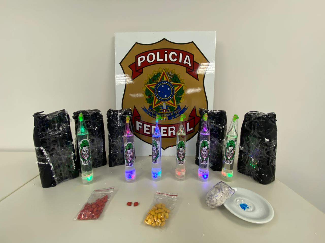 Outras duas pessoas que estavam com cerca de 60 frascos de lança-perfume, assinaram um termo circunstanciado e foram liberadas. Com o preso, a Polícia Federal encontrou 110 comprimidos de ecstasy e 60 gramas de cocaína.